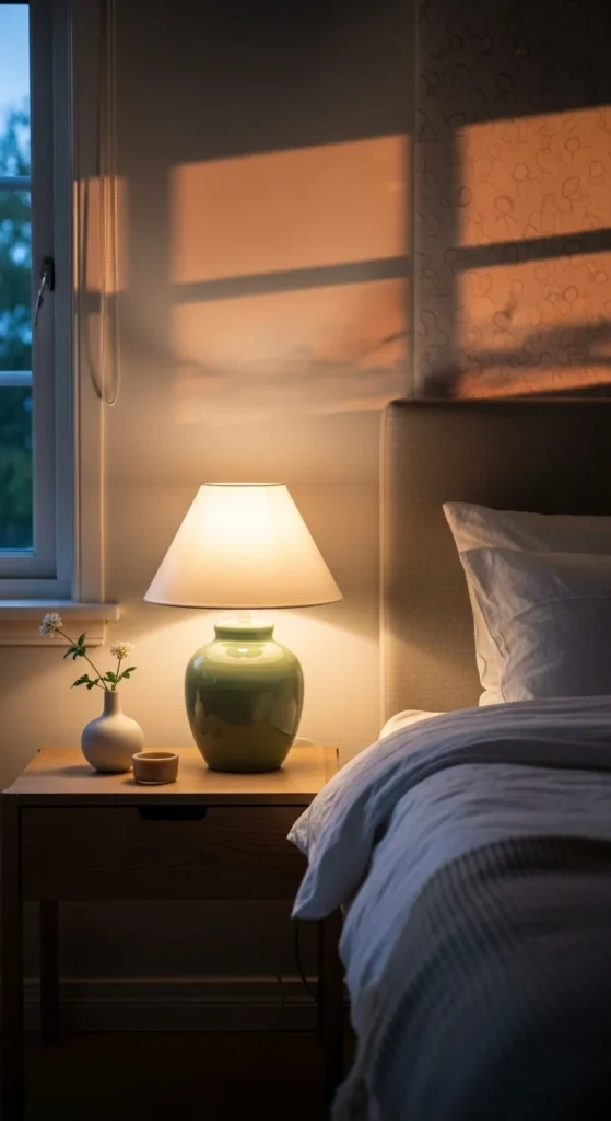 Lighting with subtle color instantly shifts the mood while keeping the bedroom calm and uncluttered.