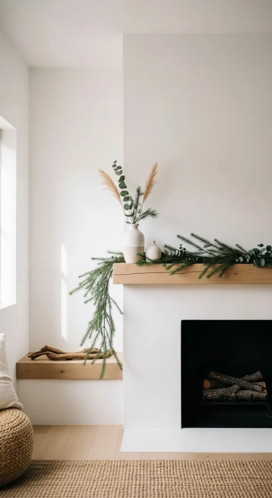 A loose greenery garland adds movement and texture without overwhelming the space.