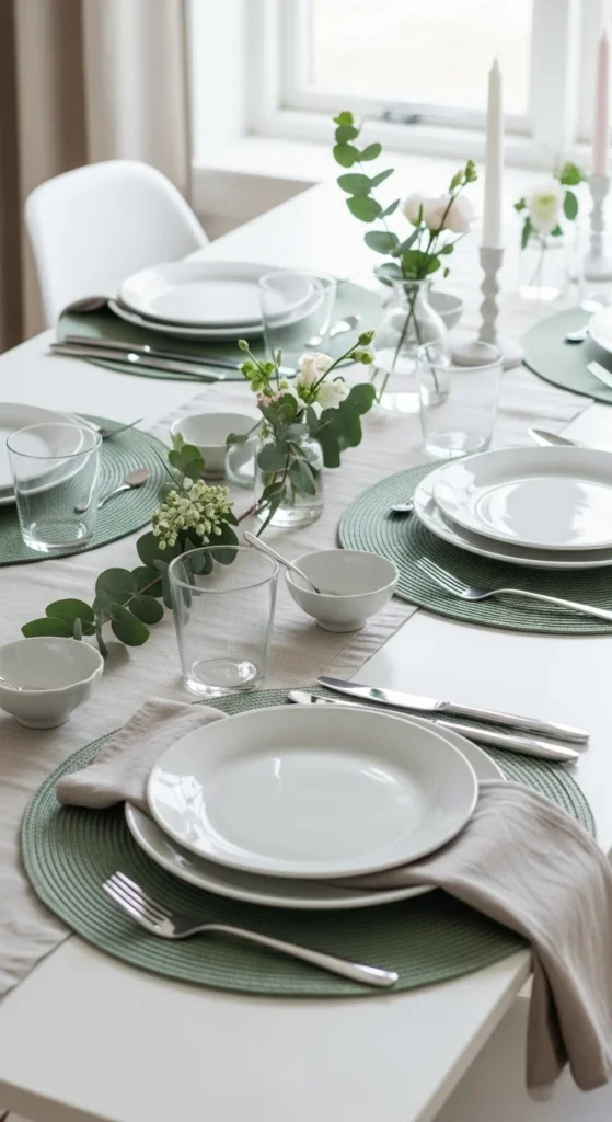This idea keeps things effortless by adding just one muted green textile to your dining setup, instantly signaling St Patrick’s Day without clutter. The relaxed linen texture feels organic and lived-in, perfectly aligned with Nordic design principles while remaining practical for everyday use