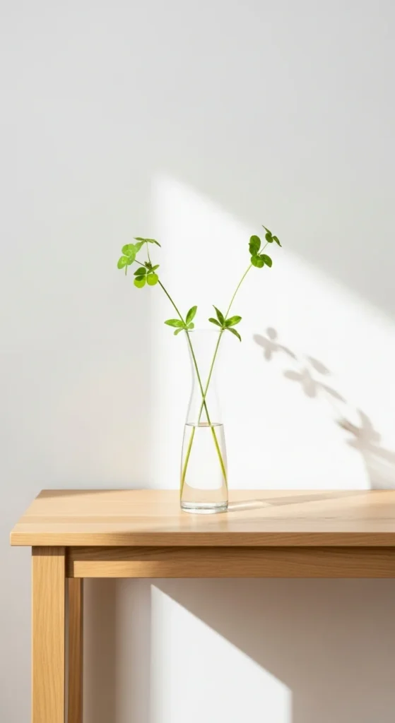 A few real or faux clover stems in a simple vase create a subtle holiday reference without feeling themed. This works well on entryway tables, shelves, or windowsills where restraint is key.