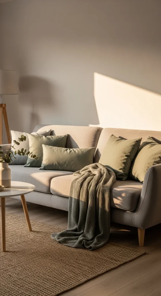 Swapping pillow covers is one of the easiest ways to acknowledge St Patrick’s Day while staying true to minimal decor. Soft sage or eucalyptus tones blend seamlessly into Scandinavian interiors.