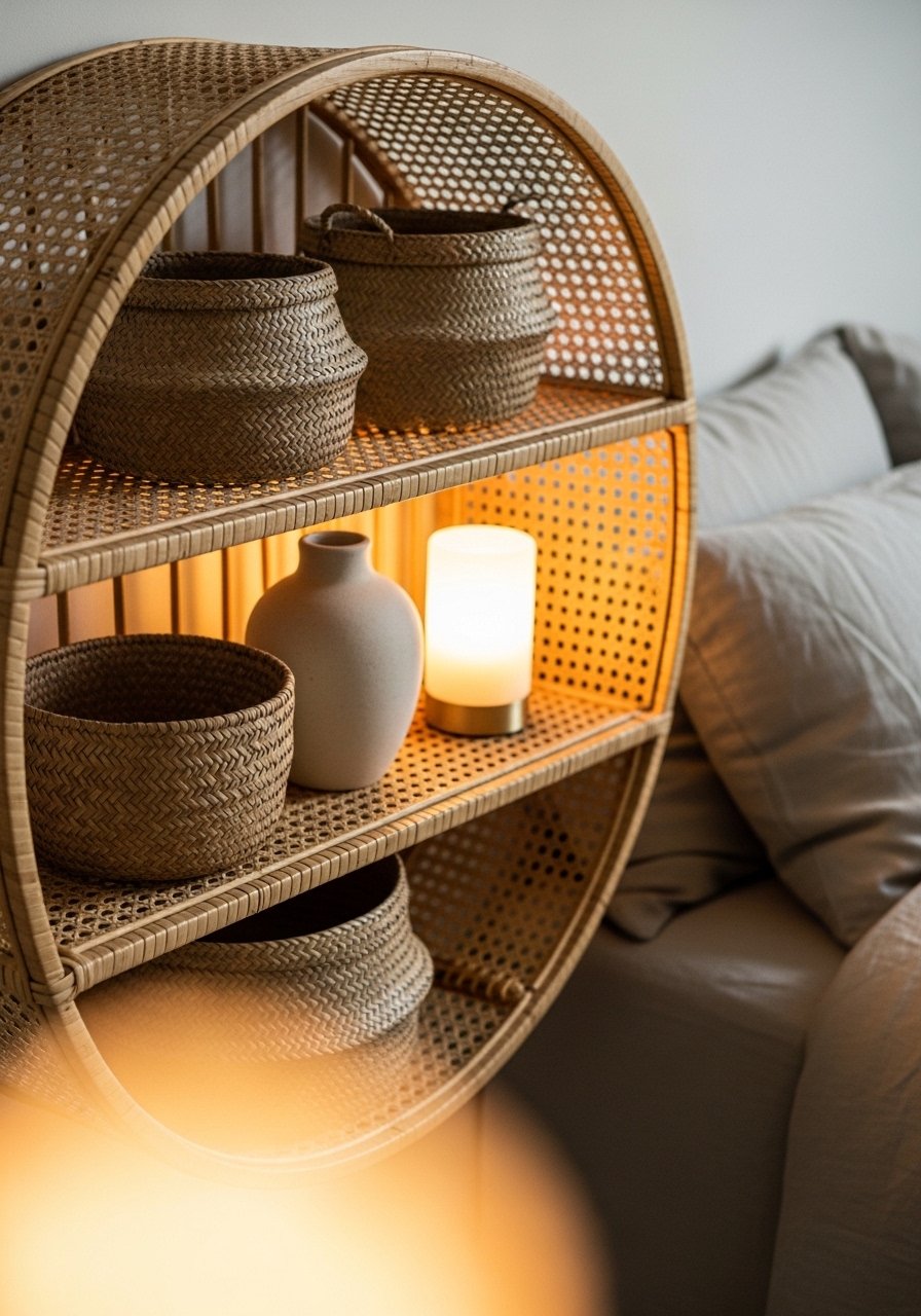 Every showroom I walk into has at least one rattan piece this year. Woven textures add warmth to strict minimal palettes. Budget: $25-120. I messed up once by pairing rattan with other warm woods of the same tone, which looked monotonous in photos. Break it with a black metal sconce or white ceramic lamp. For a simple start, consider a rattan pendant light shade.