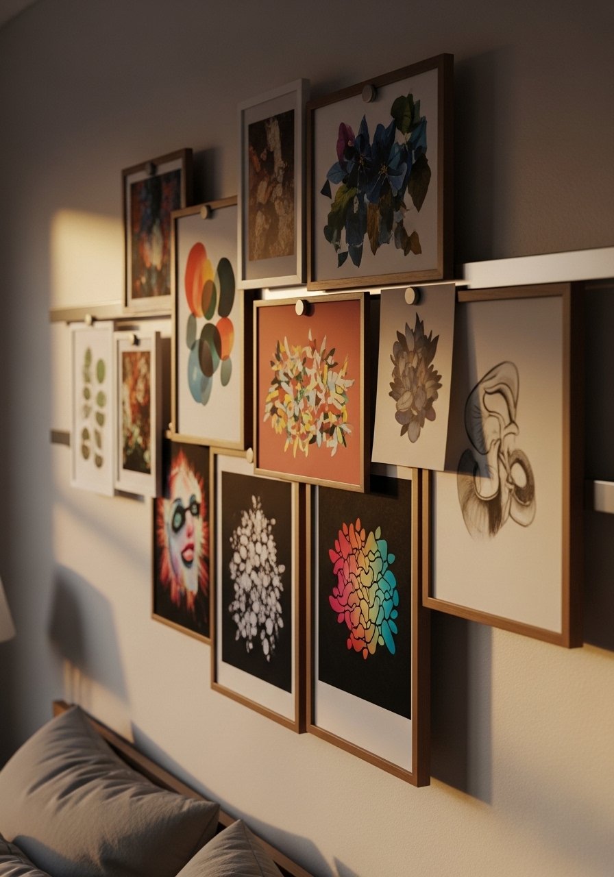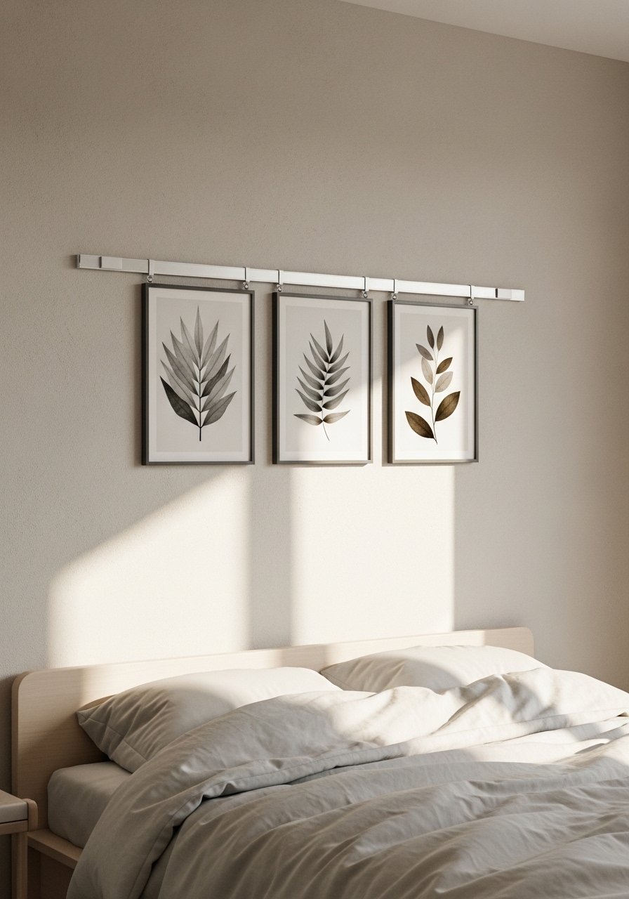 I found a magnetic gallery rail and it made swapping art painless. The rail keeps composition balanced and prevents new holes in drywall. Budget: $25-60. A common error is overfilling the rail, which becomes chaotic in actual living conditions. Stick to three to five pieces for clarity. For rotating seasonal art, use a magnetic picture hanging rail 4ft.