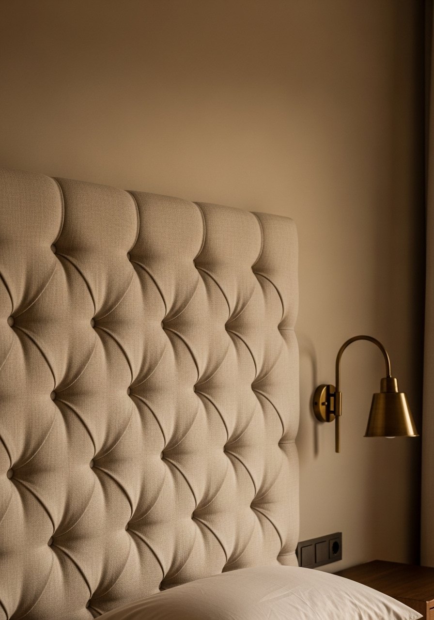 A tufted headboard softens modern frames and photographs well. I found one 54 inches wide that fits a queen bed snugly. Budget: $120-400. Avoid tiny headboards that look lost, especially in tall-ceiling rooms. Pair with matte brass accents to modernize the vintage vibe. Browse tufted headboard panels for queen bed.