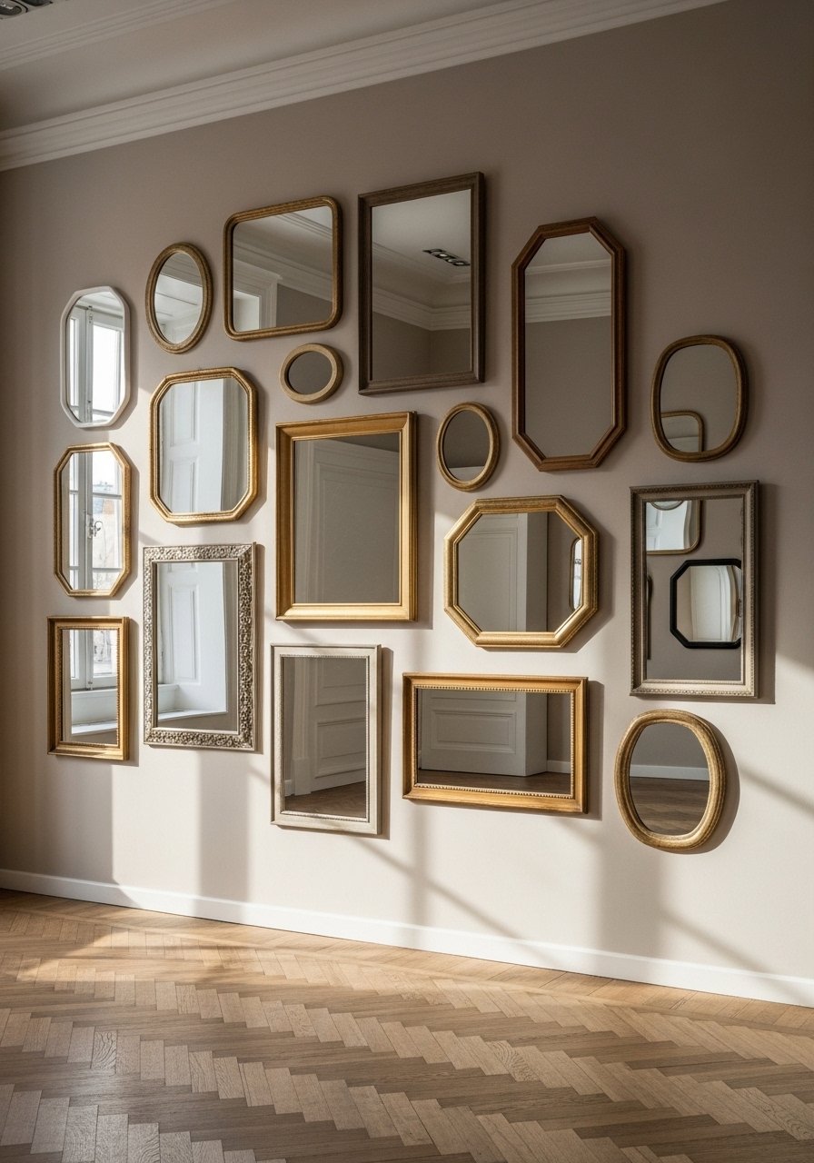Multiple mirrors add interest and amplify light, especially in rooms with a single window. I used three mirrors at varying heights: one large round and two smaller ovals. Budget: $90-300. Avoid mirrors with conflicting frame styles. Keep one dominant finish. For a cohesive start, try assorted decorative mirrors set.