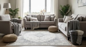 Layering rugs creates a collected look that shows well in photos and stands up to real traffic. I use a natural jute base with a softer wool on top for comfort. Budget: $80-400. People buy a small rug that disappears. Go bigger than you think. I use an 8×10 under my queen bed with a 5×8 accent rug. Consider 8×10 jute area rug as the foundation.