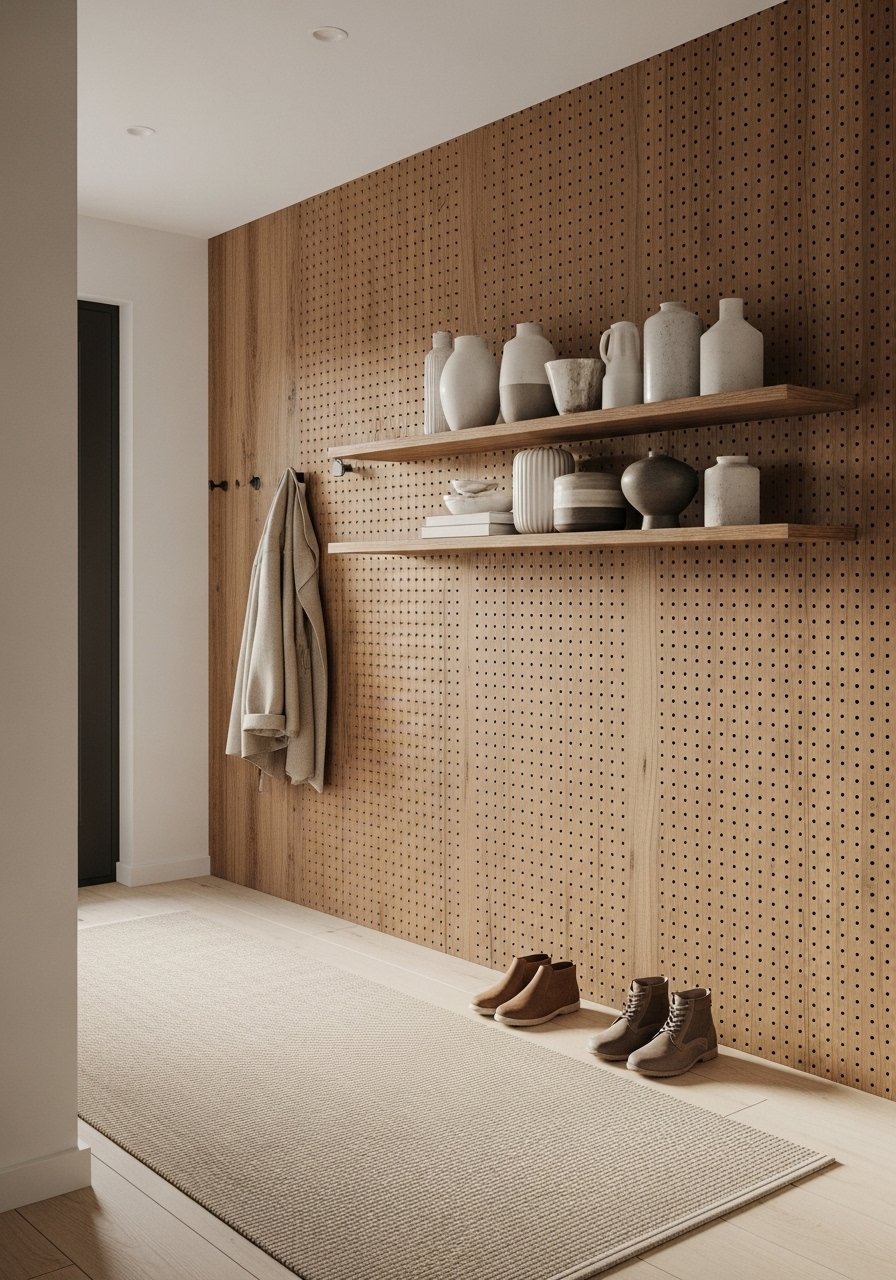 Warm Wood Accent Wall With Peel-and-Stick Panels — Cozy Entryway