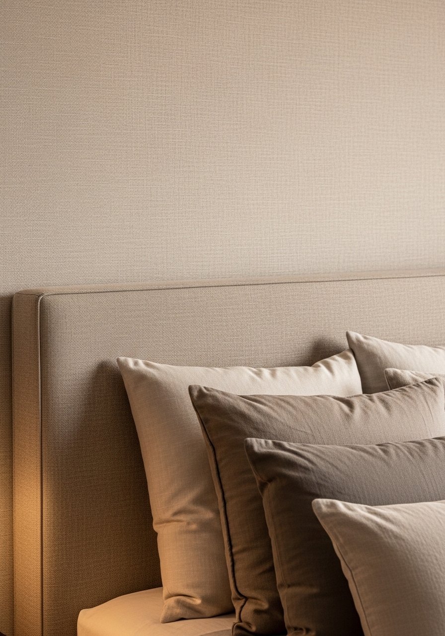 Statement Headboard in Warm Fabric — Bedroom Focal Point