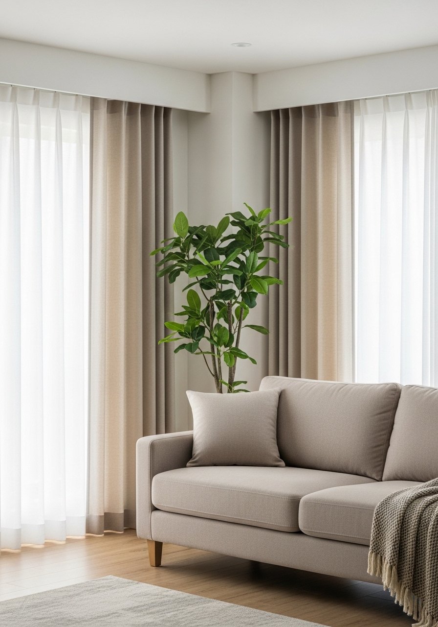 Hanging curtains high makes ceilings feel taller. I use linen blend panels hung two inches from the ceiling and puddled slightly on the floor for a tailored look. These linen blend curtains, 96-inch work on nine-foot ceilings. Mistake to avoid: hanging too low—mid-wall placement shortens the room. Go high and wide for maximum impact.