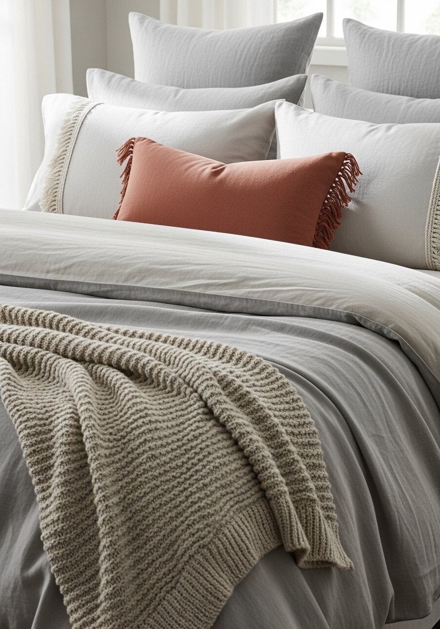 I kept the palette neutral—warm cream base with soft linen and a jute rug—then added one terracotta pillow for warmth. I paired embroidered pillow covers in 18×18 and a chunky cream throw at the foot of the bed. The result feels cozy and quiet, not busy. Avoid overusing pattern: one bold accent is enough. This creates a calm, layered look that reads as intentional in real life, not just for photos.