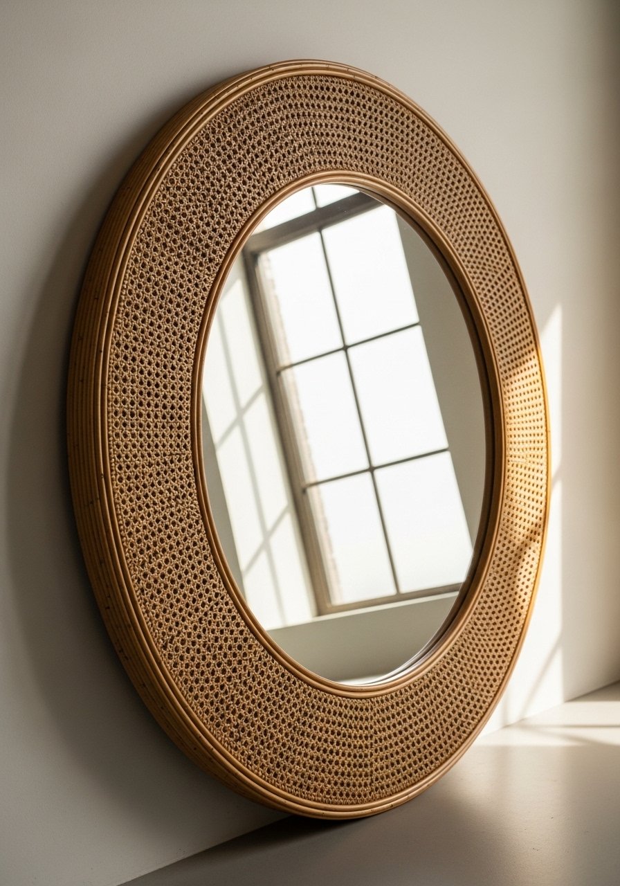 - Cane mirror 30-inch round (~$70-120)