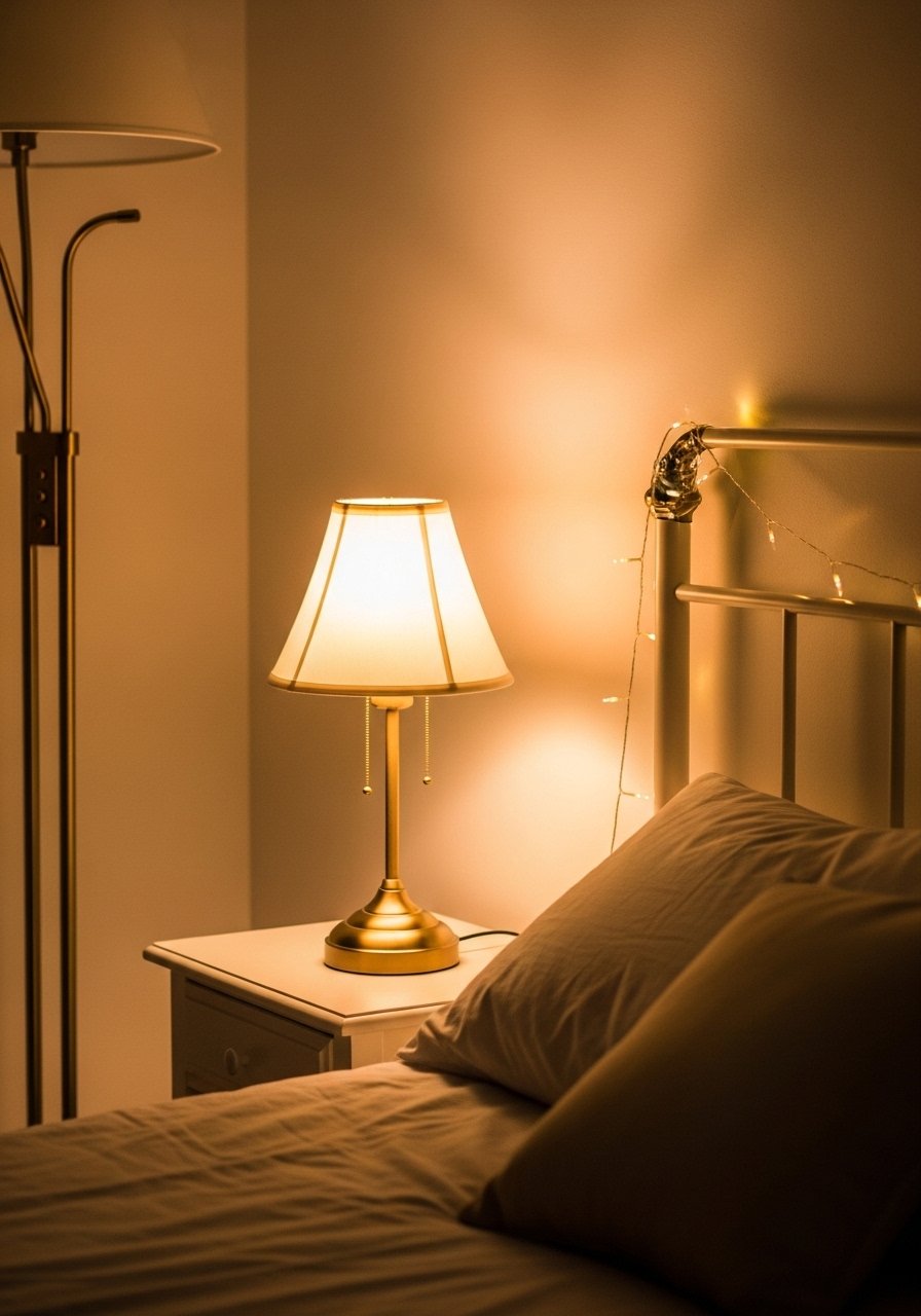 Layered lighting creates mood. I keep a dimmable floor lamp, a bedside lamp, and low-watt string lights behind the headboard. LED Edison bulbs warm white make everything glow warm. The mistake is relying on overhead lighting alone; it flattens the room. Dimmers let you control the vibe for reading or sleep. These small changes make the bedroom feel intentional and cozy without heavy fuss.