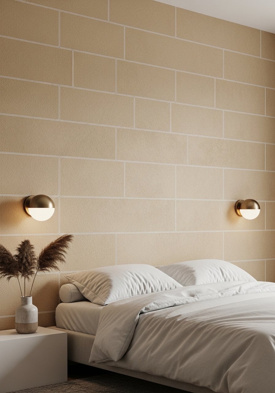 Neutral Peel-and-Stick Accent Wall Behind Bed