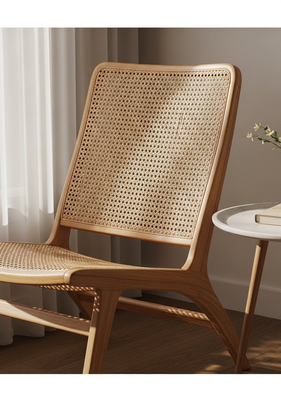 A cane accent chair adds a sculptural but airy seat. I paired a 26-inch wide cane chair with a small pouf and a throw. The chair breathes and doesn’t weigh down the corner. I recommend a neutral cushion and a throw for comfort. Avoid heavy upholstery in small rooms; cane keeps it feeling light. This seat pairs beautifully with warm wood tones and jute underfoot for a cohesive boho corner.