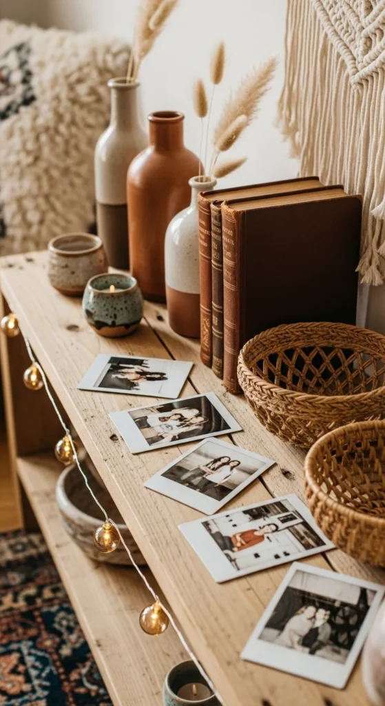 Include personal items like handmade pottery, travel souvenirs, or framed memories. These touches make the room feel lived-in. Display them on open shelves or a small cabinet. Rotate items if the shelf feels too full.