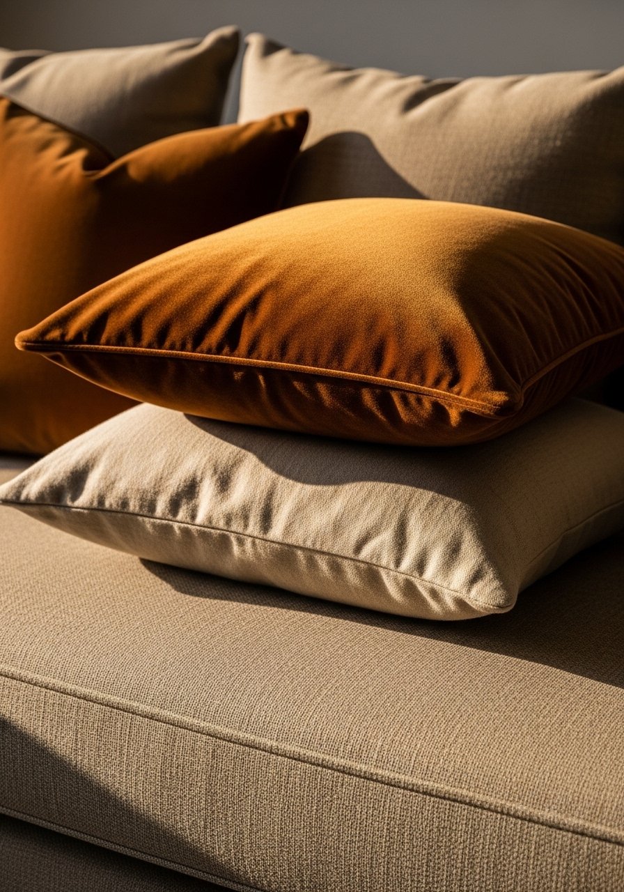 I switched one velvet pillow into a linen mix and the sofa stopped reading too formal. Velvet gives depth. Linen keeps things relaxed. Budget per pillow $12 to $45. Avoid matching every pillow fabric. That creates a staged feel in photos and a rigid feel in real life. Use odd numbers and vary sizes. I bought velvet pillow covers and paired them with linen covers for balance.