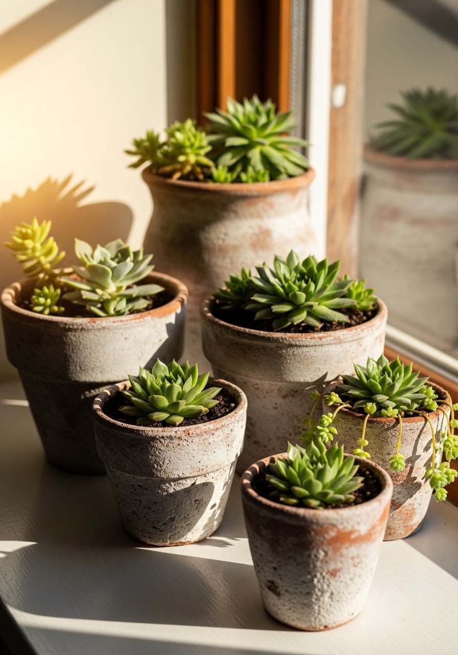 I once glazed all my pots white and lost that earthy presence. The matte, raw terra-cotta is what creates that lived-in warmth. Mix glazed and unglazed for contrast.