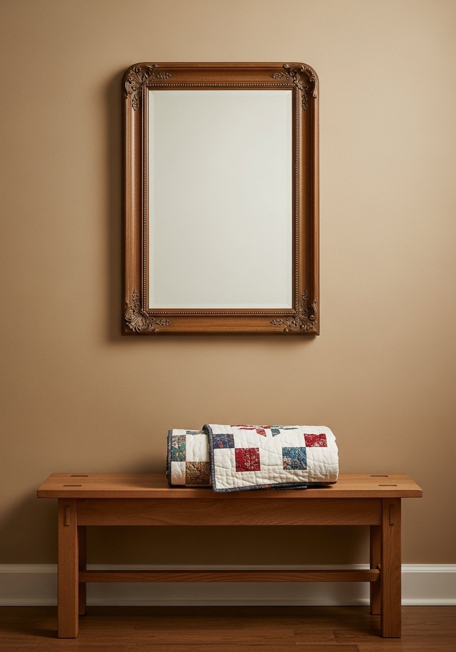 I hung a classic federal-style mirror above a folded family quilt and the entry felt like a small story. The reflective piece brightens while the quilt keeps it rooted and sentimental.