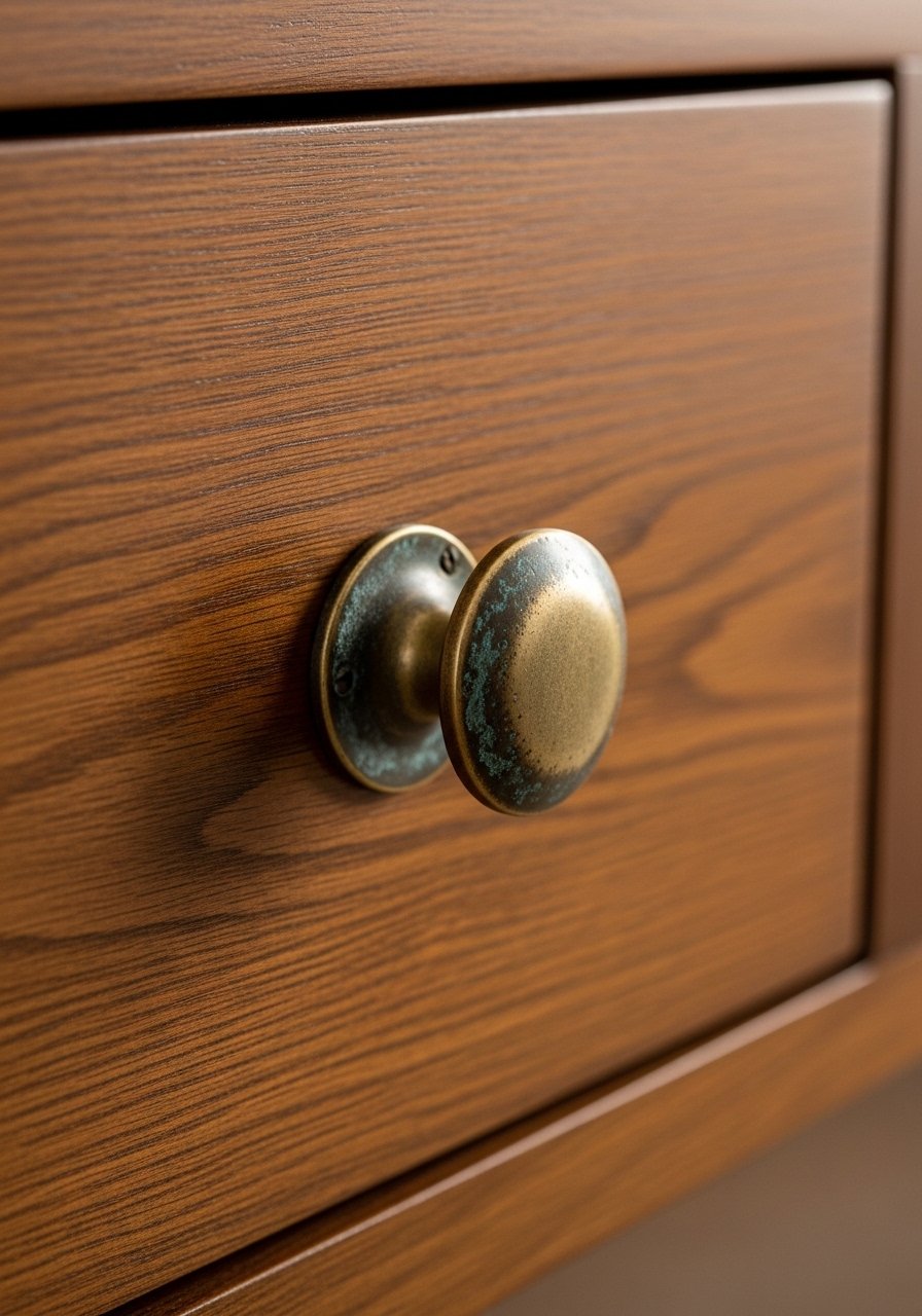 I replaced new cabinet knobs with distressed brass hardware and the kitchen stopped reading like an appliance showroom. The small change adds texture and a little history.