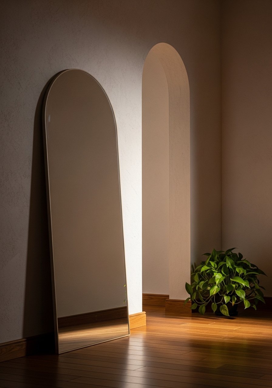 I once hung a square mirror and it felt like punctuation, not conversation. The arch reads more relaxed. Leaning the mirror casually instead of mounting works well in rental spaces too.