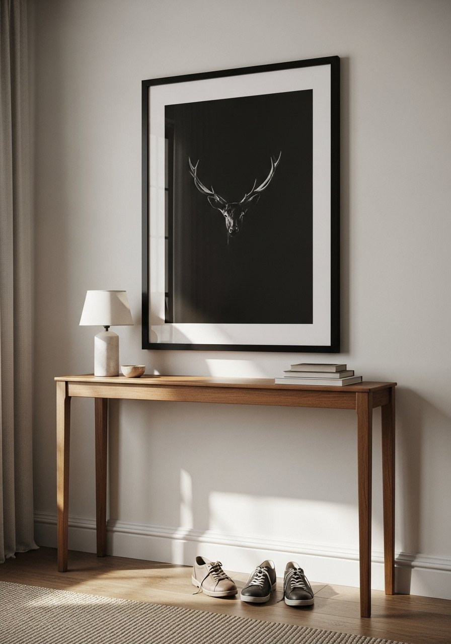 A single artwork anchors the console. It feels curated and reduces the daily need to rearrange. I leaned the piece for a relaxed vibe and kept one low tray for essentials.
