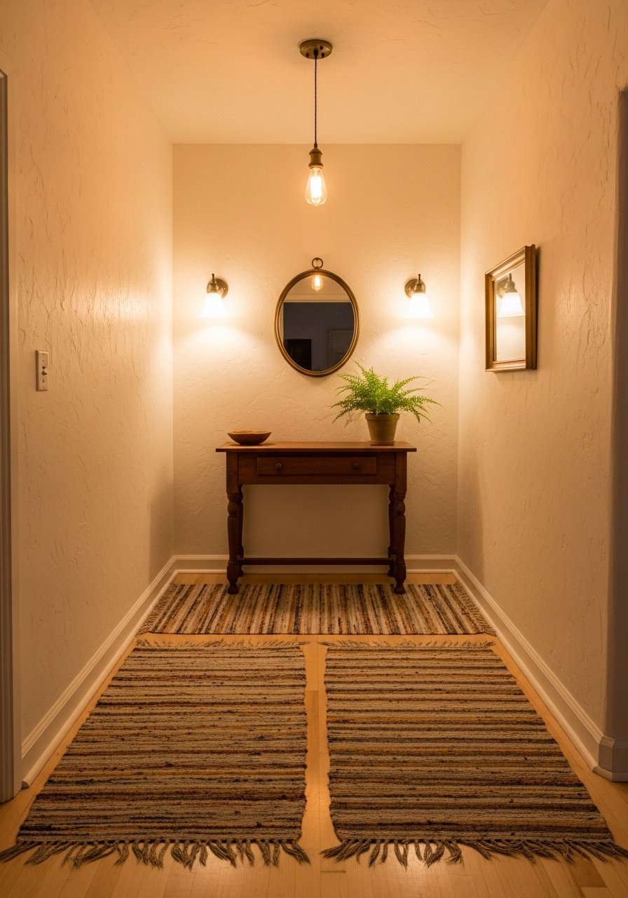 Mirrors also bounce light into darker halls. I learned the hard way not to hang it too high; the first one reflected only the ceiling.
