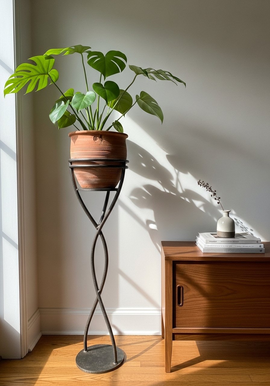 13. Sculptural Plant Stand for a Touch of Green