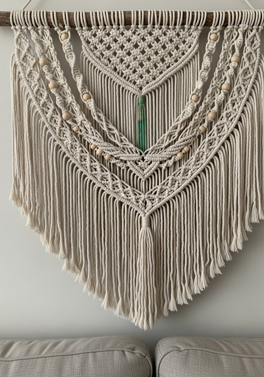 Macramé Wall Hanging With Beads for a Cozy Living Room