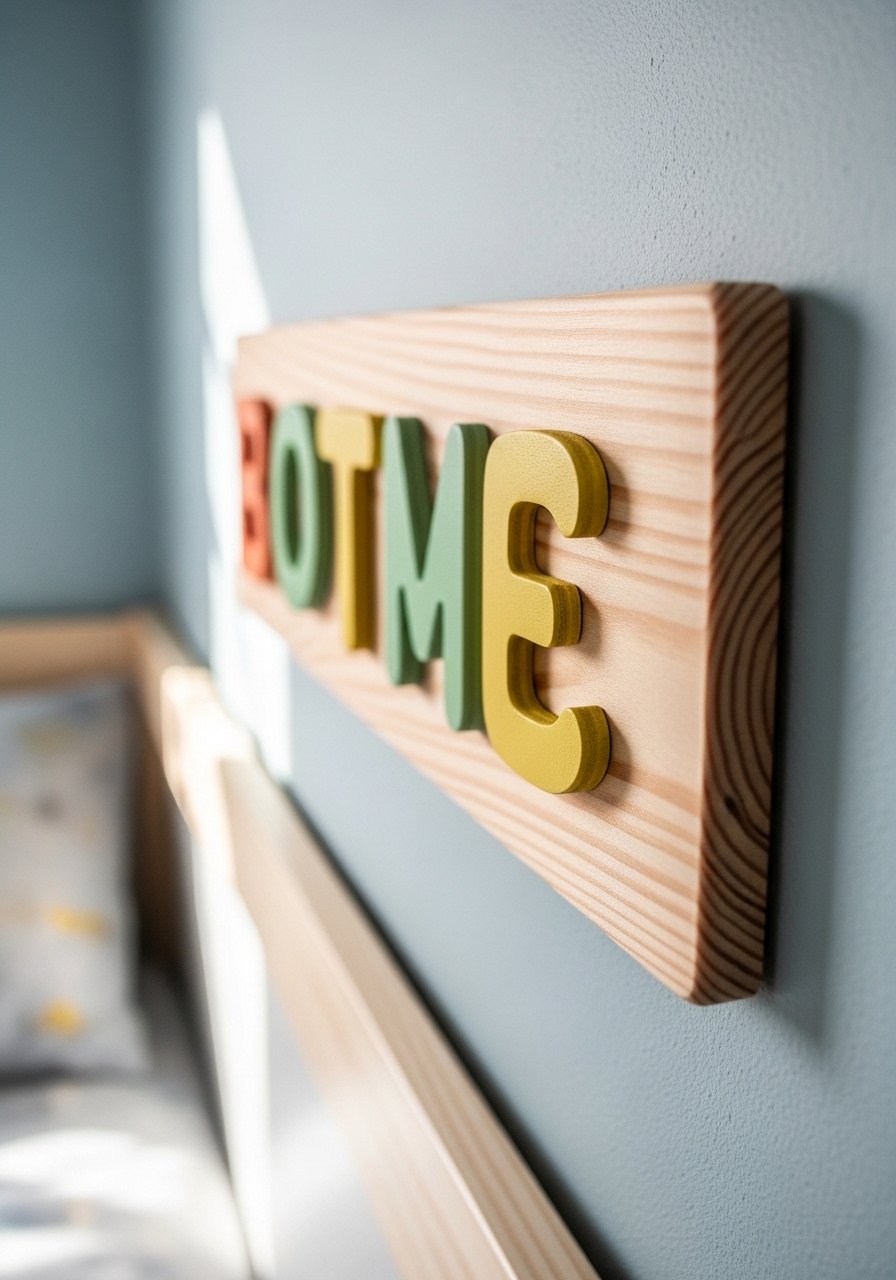 I hung a simple laser-cut wooden name sign above my child’s bed for a personal touch. A 24-inch light-wood sign with painted letters looks modern and special. I bought personalized wooden name signs from a maker. Avoid overly ornate fonts that are hard to read from across the room. This small custom piece makes a room feel tailored without clutter and pairs well with simple wall shelves and a reading lamp.