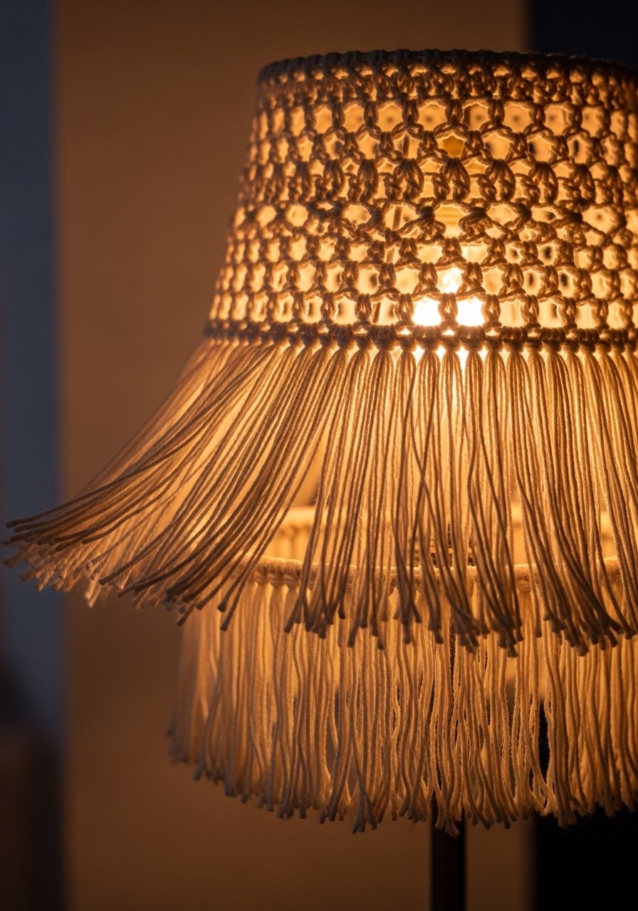 Crochet Fringe Lampshade for Trendy Texture in a Sitting Area