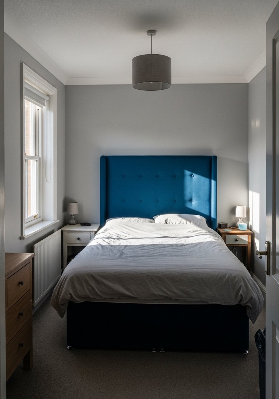 I upgraded to a 60-inch tall upholstered headboard and the whole room read richer. A tall headboard gives vertical focus in small bedrooms. Budget $150-350. Online photos make bold colors pop. In person darker fabrics hide wear better. The mistake is picking a headboard too low for the pillow stack. Measure your bed and add 12 to 18 inches for visual balance. Consider upholstered headboard options.