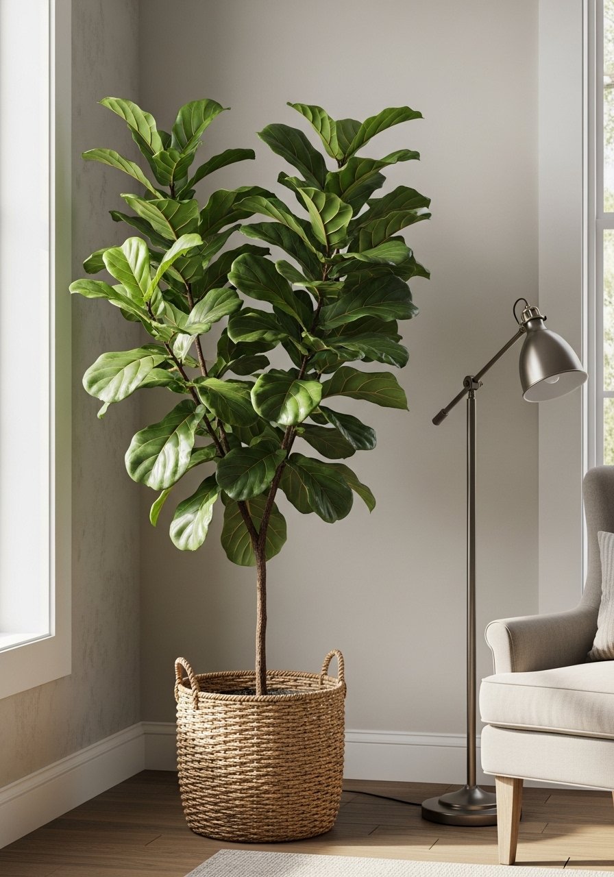 I replaced three small succulents with a single 6-foot artificial fiddle leaf fig and the corner finally read intentional. Plants add vertical balance and help with scale in large rooms. Budget $60-150. Real plants need light and care. Fake ones are lower maintenance and better for dark corners. A common error is picking a flimsy pot that tips over. Choose a heavier ceramic or a weighted basket. Try artificial fiddle leaf fig 6ft.