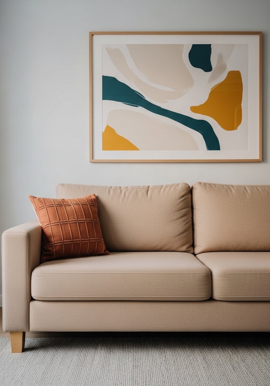 A single oversized piece of art gives me a clean, gallery-like moment. I hung a large abstract canvas above the sofa and it read intentional. Pick art that echoes your accent color and keep frames simple. I bought a 36×48 canvas print to avoid a cluttered gallery. Mistake: too many small pieces in a tight area—one strong image can be more powerful than five small ones.