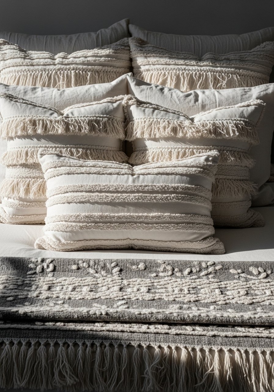 Fringe and ruffles are having a moment; I added a fringe lumbar pillow cover and it made the bed look more layered and inviting. These details add softness without heavy pattern. The mistake is overdoing trims in one room—use them as accents. The texture reads intentional and cozy, especially combined with linen sheets or a knit throw. It’s an easy way to make bedding feel curated.