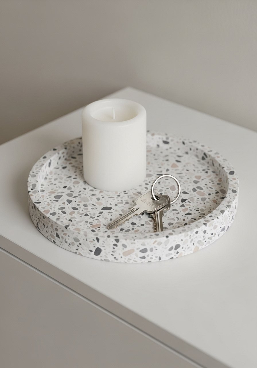 Terrazzo shows up everywhere in small doses — trays, coasters, and lamp bases. I use a small terrazzo tray as my catch-all by the door. It adds pattern without dominating the room. Mistake: introducing terrazzo in large fields (floors/walls) if you prefer calm; start with accessories. The result feels modern with a playful vintage nod and pairs well with warm woods and clay.