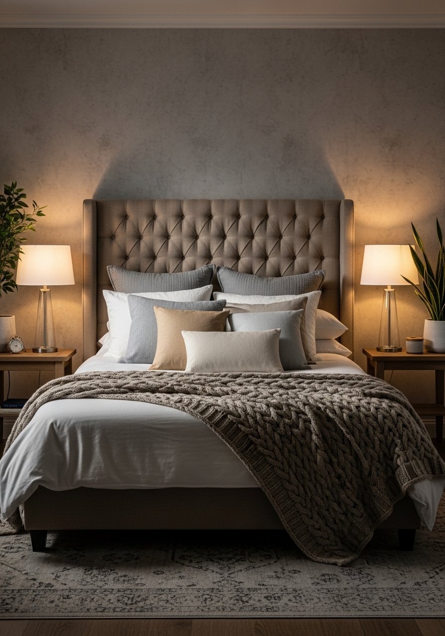 A statement headboard changed my bedroom from basic to finished. Choose an upholstered vertical headboard to add height and anchor bedding. I picked a warm beige fabric and layered with textured pillows, including 22-inch euro pillow inserts. Avoid tiny headboards on large beds—they disappear. This creates a focal point and makes the whole room feel deliberate, especially when paired with simple nightstands and soft lighting.