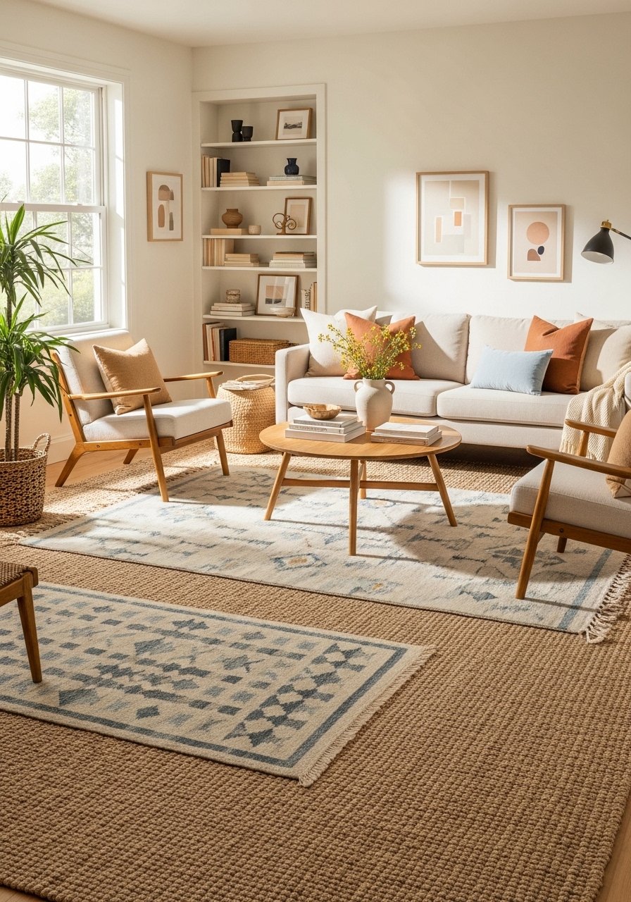 Layering a jute rug under a patterned wool rug added depth to my living room. The natural fiber base keeps things grounded while a smaller patterned rug defines the seating area. I used an 8×10 jute rug topped with a 5×8 patterned rug. Mistake: mismatched scales—ensure the top rug is proportionate to furniture legs. This technique amps texture and creates zones in open-plan spaces.