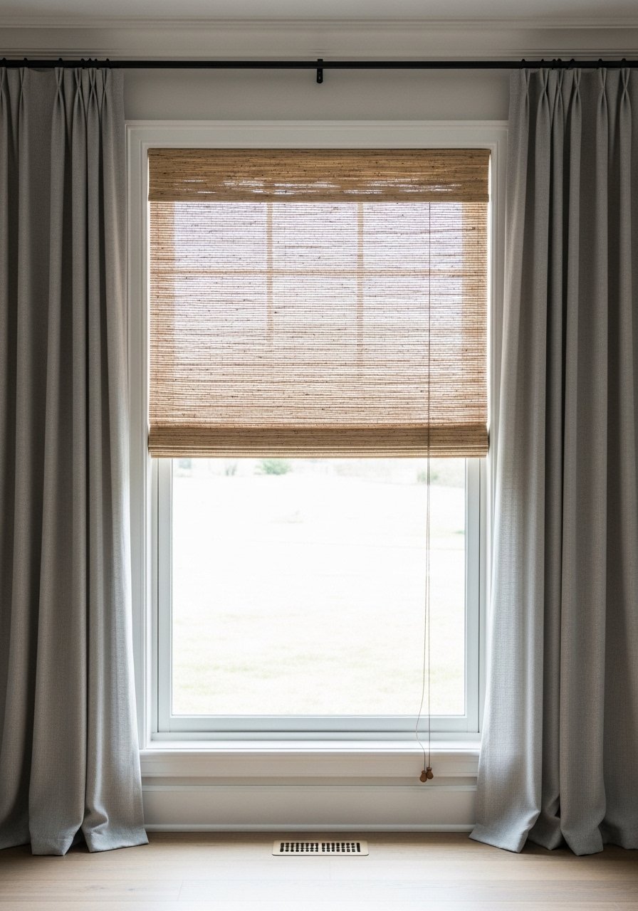 Natural fiber shades warm a room with filtered light. I paired woven shades with linen curtains to control glare and keep texture layered. They’re great for rooms with direct sun that need softening. Mistake: installing shades without side curtains—curtains frame the window and add softness. These shades pair perfectly with warm woods and rattan accents for a relaxed, edited look.