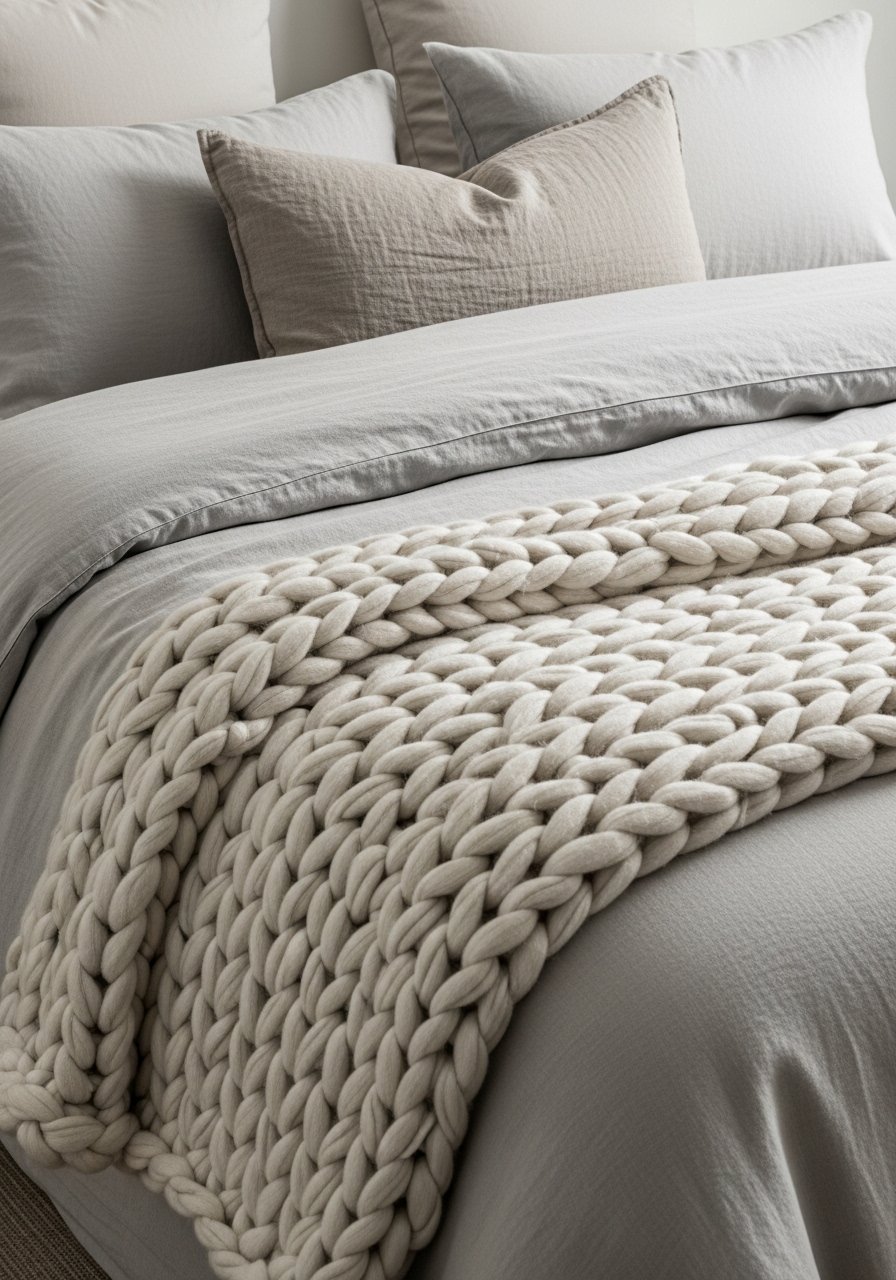 - Chunky knit throw in oatmeal, 50×60 (~$40–65)