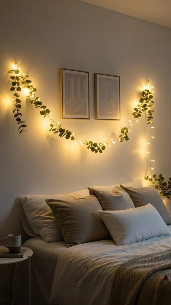 Choose thin wire or fabric-covered lights for a softer look. Keep the arrangement relaxed—perfect symmetry isn’t the goal here.