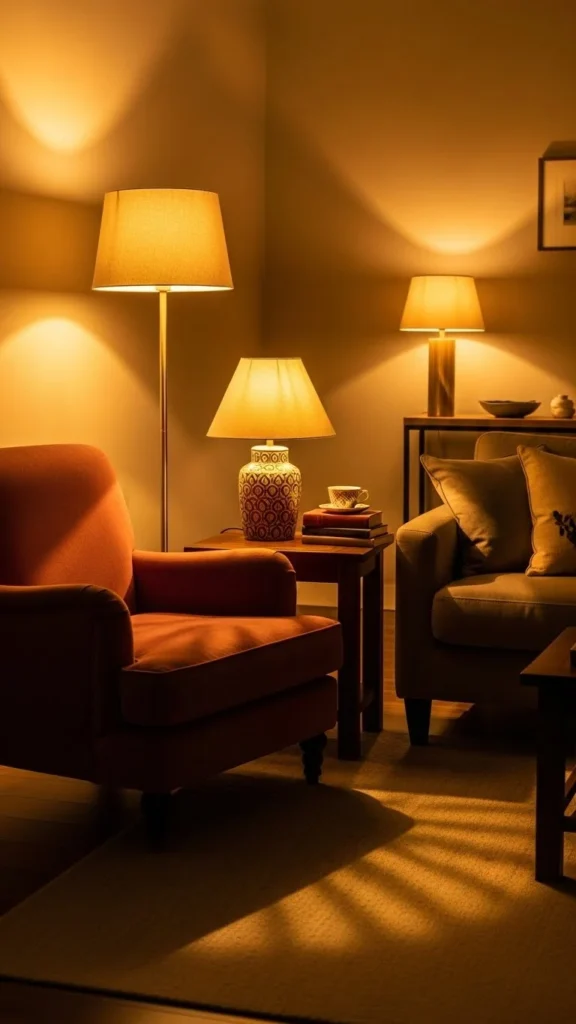 Lighting can instantly change how a living room feels. Overhead lighting alone often makes a space feel flat or cold.