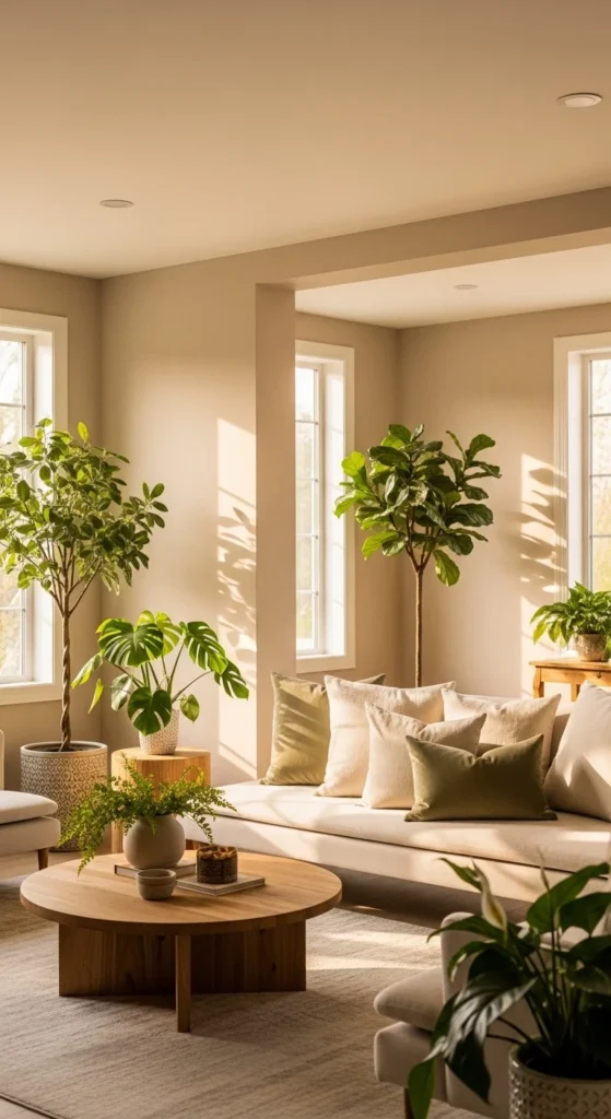 Nature instantly softens a modern space. Biophilic design is trending for 2026, and for good reason: it boosts calm, improves air quality, and adds organic warmth.