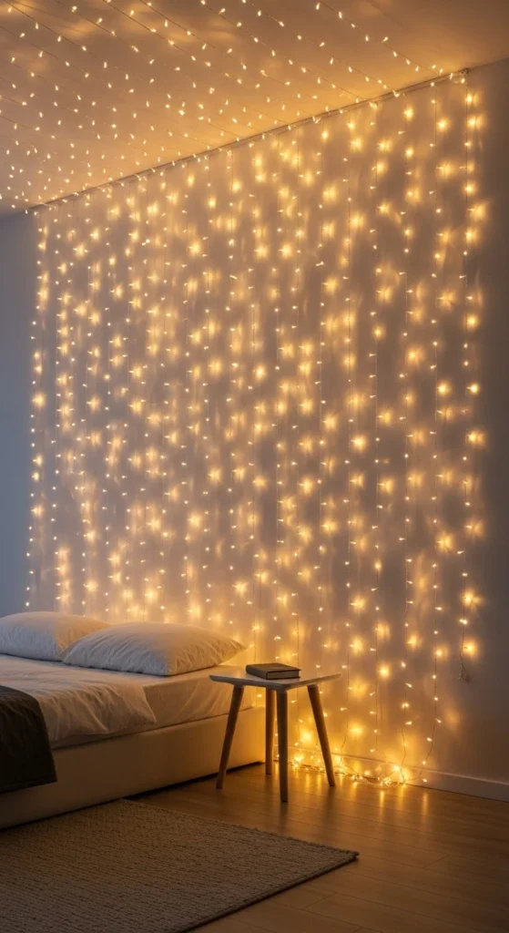Fairy lights aren’t just decorations—they’re atmospheric magic. When you layer them across your walls, bed, corners, and décor, your whole room transforms into a cozy, glowing retreat.