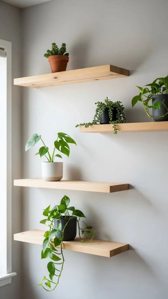 - Wall shelves with trailing plants