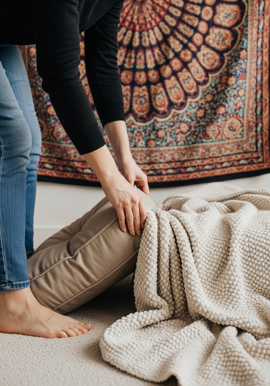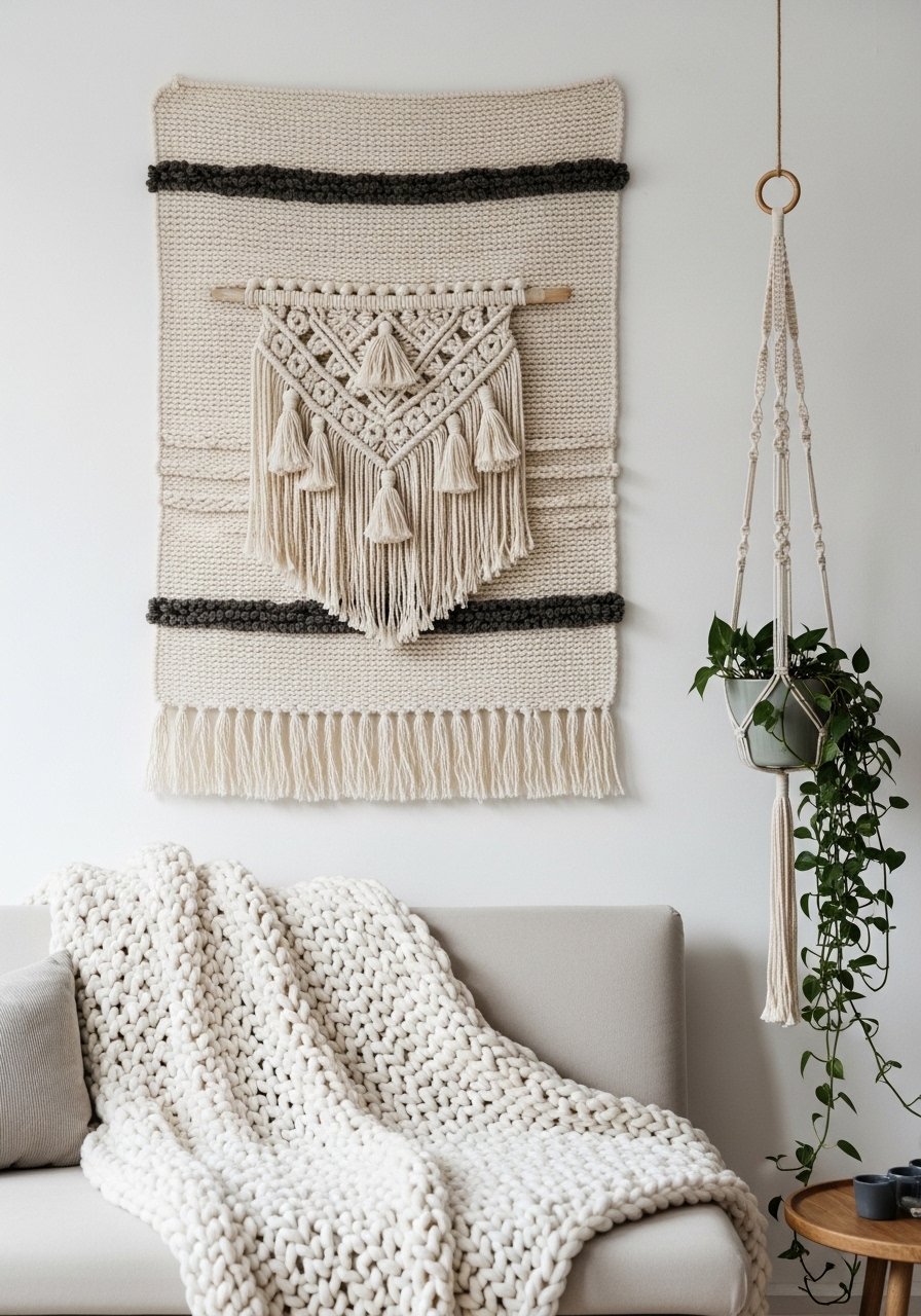 Once the tapestry is up, I bring in soft, tactile pieces to echo its texture: a chunky throw, a linen cushion, a woven planter. This makes the wall feel part of the room rather than a single statement. People usually overlook scale when layering — match the weight of textures (heavy tapestry, heavier throw; light tapestry, lighter accents). A small mistake is adding too many competing patterns; I prefer one patterned tapestry with simpler surrounding textures so the space stays calm.