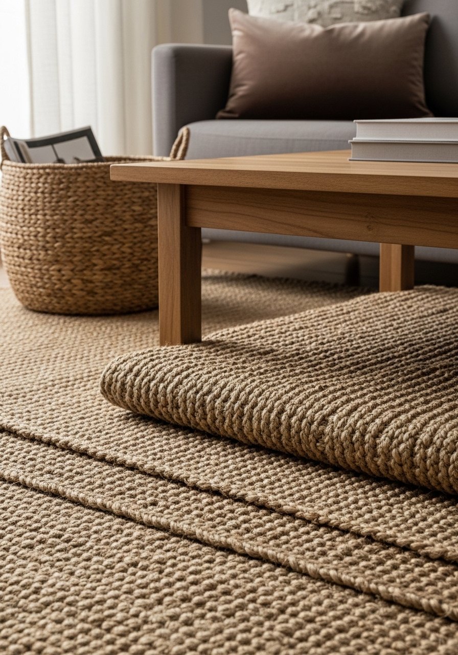 - Handwoven jute rug, 5×8, natural (~$120–300)