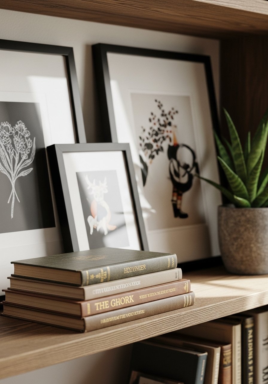 I edit surfaces down to a few groups. On a console or shelf I arrange art, plants, and a tactile object in odd numbers. Grouping tells the eye that the wall is curated, not empty.