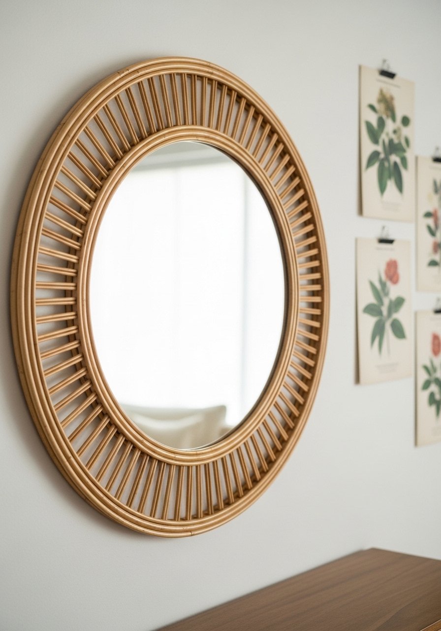 - Rattan round wall mirror, 24 inch (~$60–150)