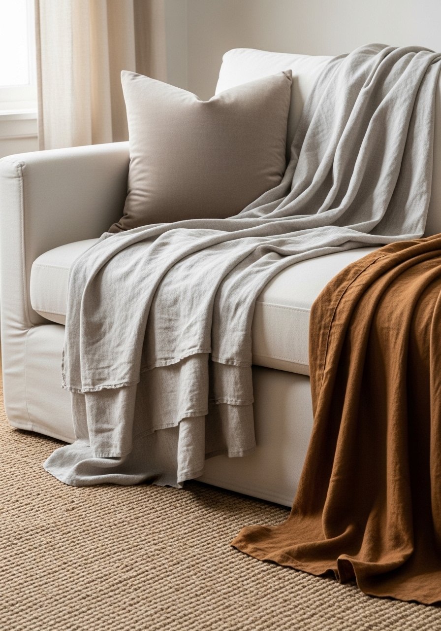 I used to stop at one throw. Then I layered linen, a muted velvet cushion, and a thin wool blanket. The result felt cozy instead of cold.