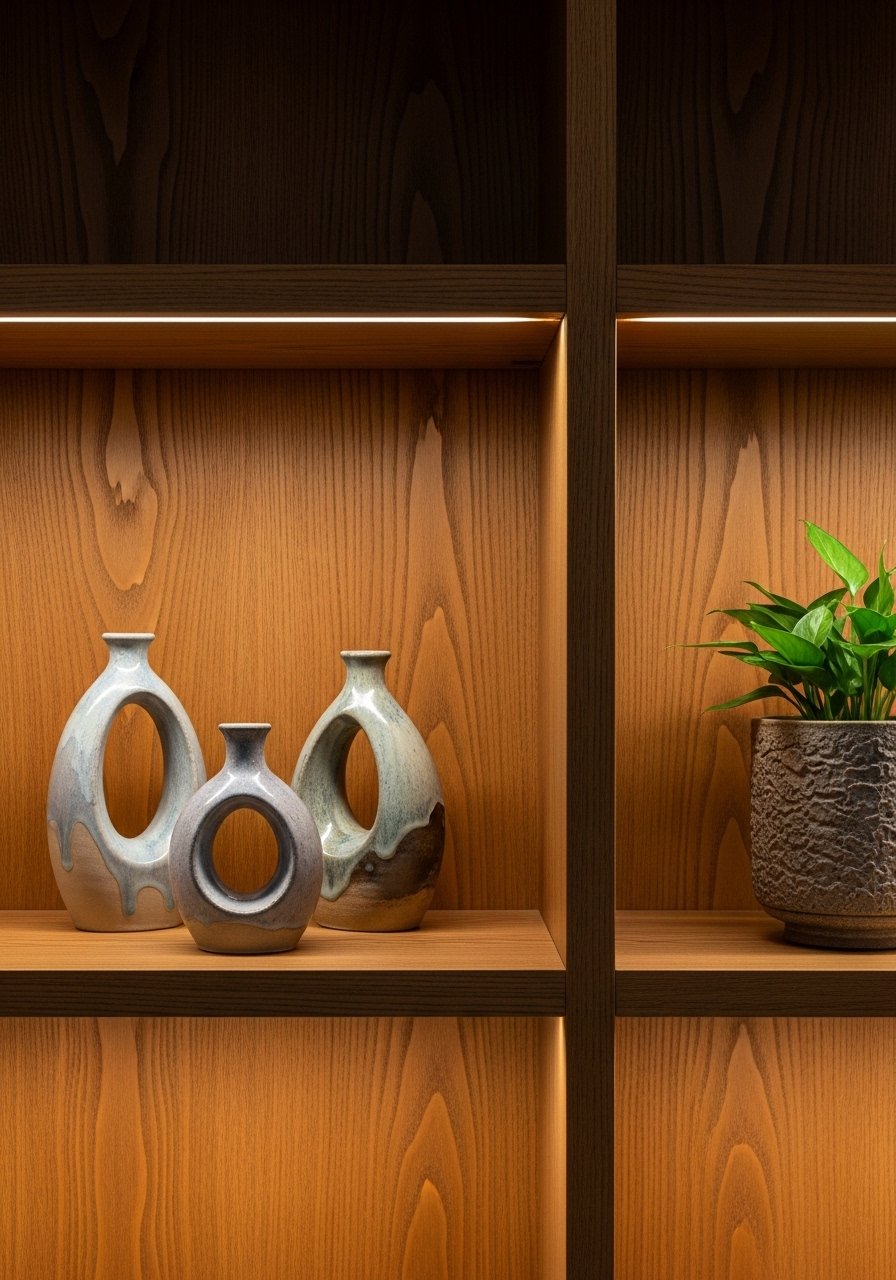 I started displaying one vase and it looked lonely. Grouping three hand-thrown pieces made the shelf feel intentional. The imperfections read as personality, not mess.